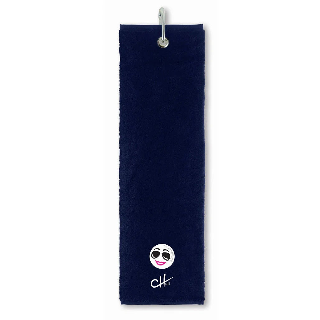 This Surprizeshop Charley Hull Official tri-fold golf towel in blue is made from soft absorbent cotton which is soft to the touch and has great absorbency. It has an attractive golf ball design embroidered on it at the base. When designing her collection Charley said - " I am delighted to launch my brand new golf accessory collection. The collection reflects my passion for golf and desire to grow the game. It includes a range of practical and fun accessories that I hope you will enjoy using. " Charley