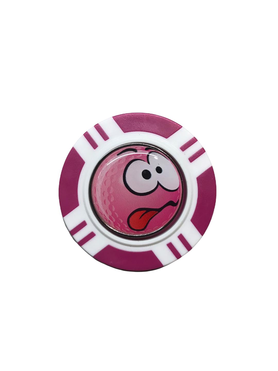 Vegas Poker Chip Golf Ball Marker. Pink Laugh, Wink, Smile, Crazy or Angry.